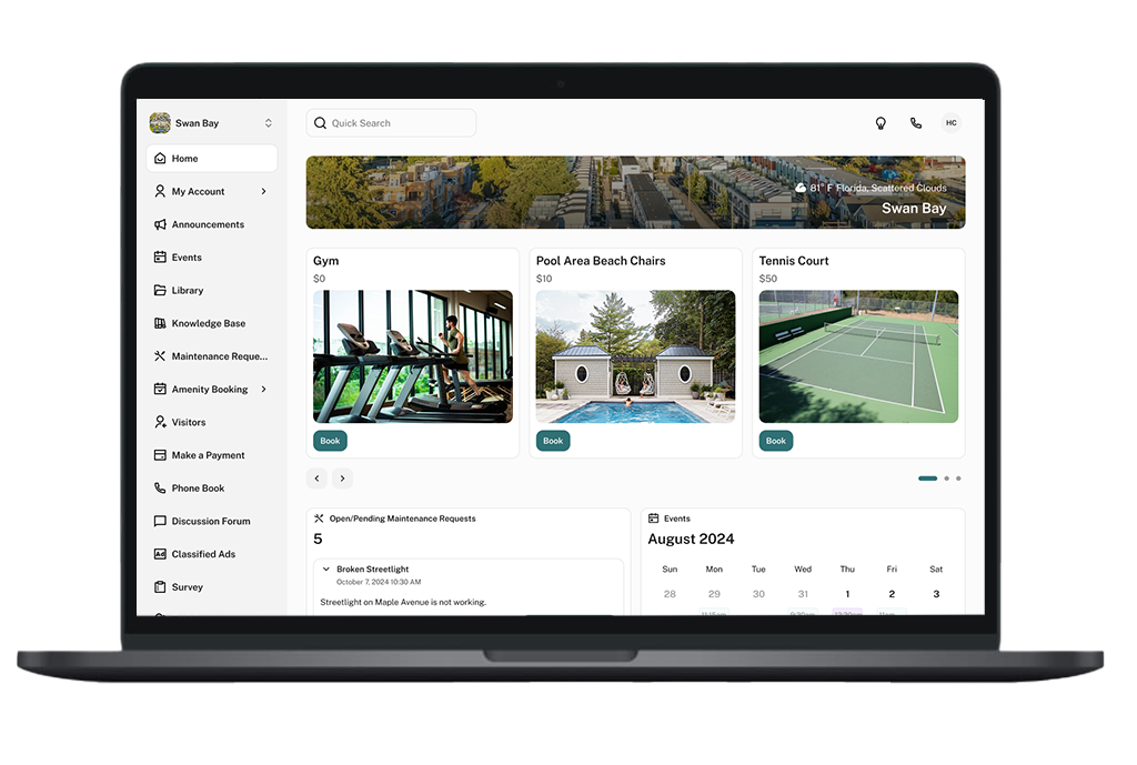 Bring communication, requests, payments, meetings, and records into one secure hub—so your board stays organized, owners stay informed, and “where is that document?” becomes a thing of the past.